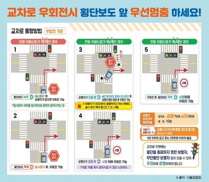 다들 업무로 바쁘시지만 교차로 우회전시 내 가족의 안전을 위해서라도 내가 먼저