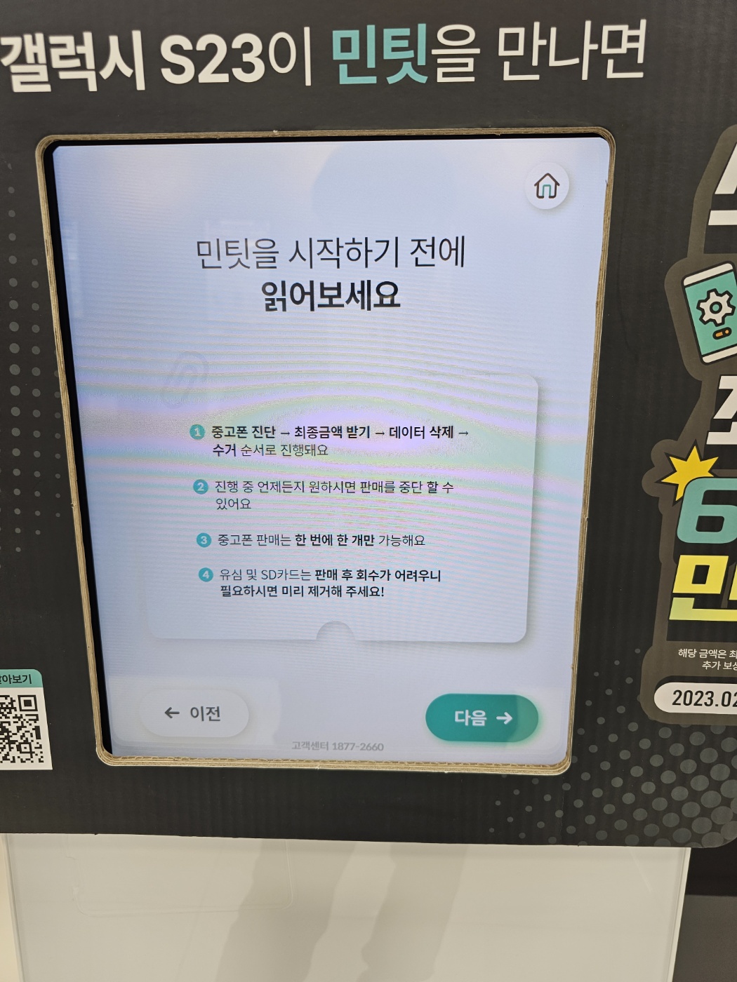 혹시나 하이마트, 전자랜드 같은 매장에서 구매하셨다면 구매한 매장에 가셔서 민팃 ATM 판매하는 거 도와달라고 하면