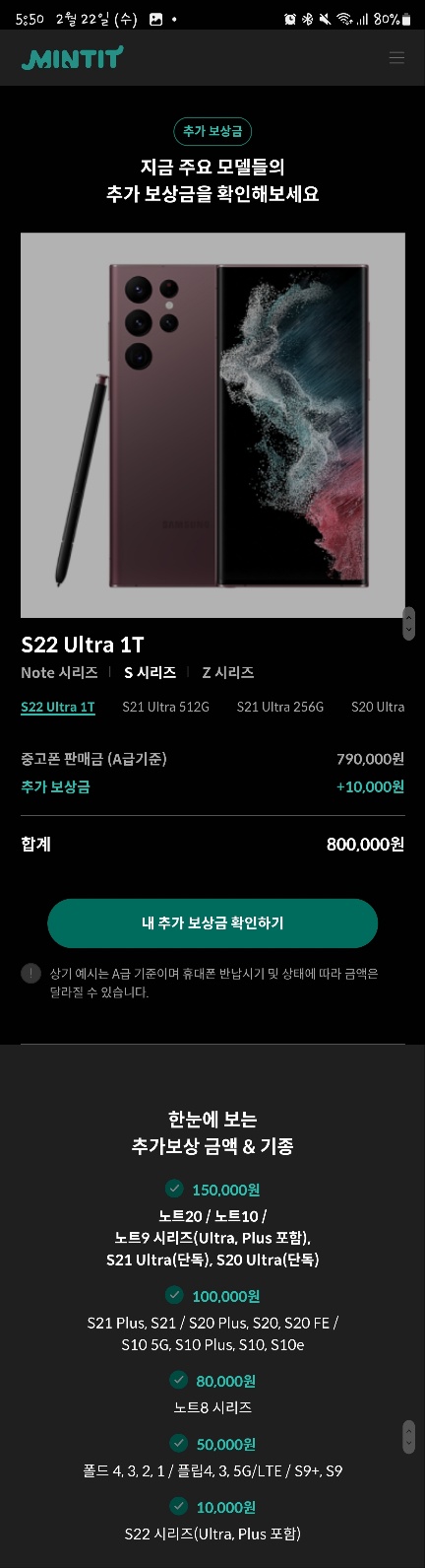 민팃 중고폰 시세에 최대 15만 원 추가보상받을 수 있는 혜택이 있습니다.