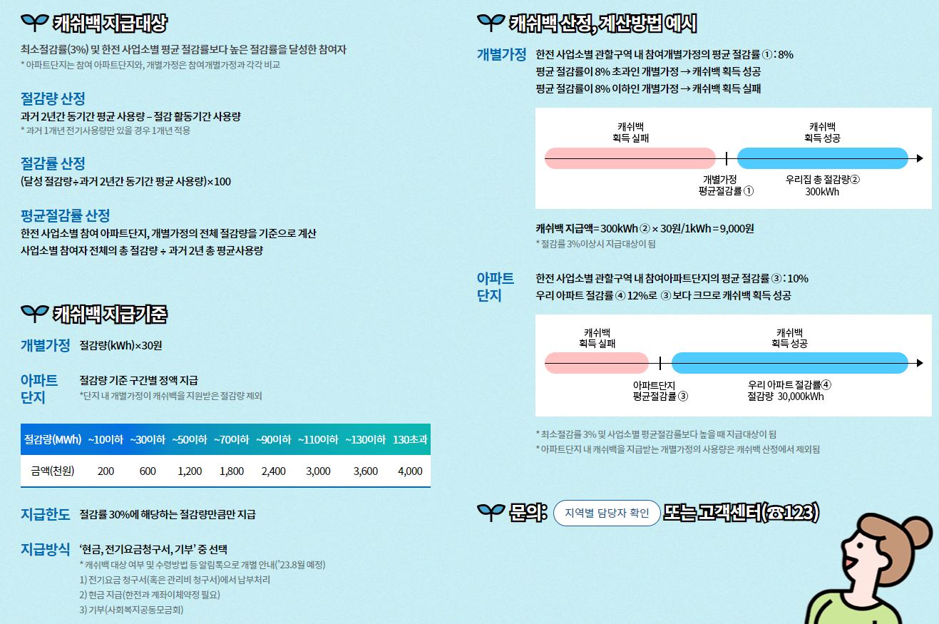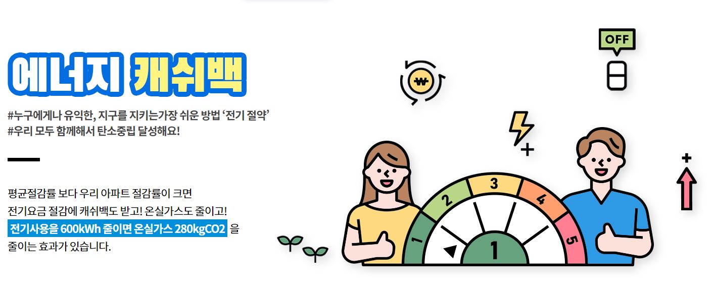 에너지캐쉬백이라고 한국전력에서 시행하는 에너지 절약 참여활동이 있습니다.