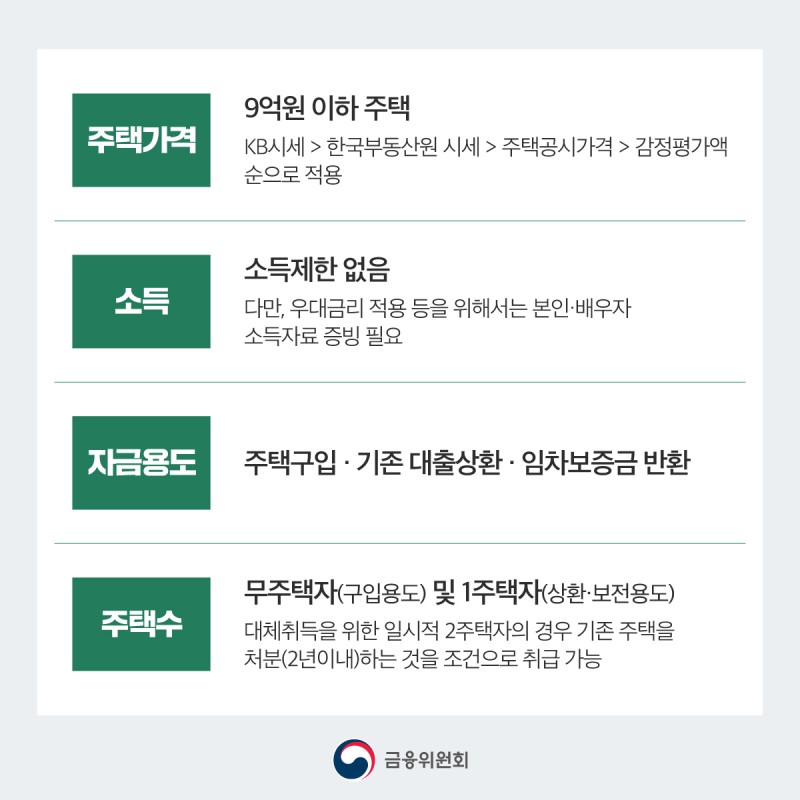 이때 서민들의 실수요층에게 이자상승 불안 없이 저금리 상품을 이용할 수 있도록 지원해 주는 상품입니다.